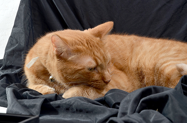 Basho Inspects and Approves of my 'set'.