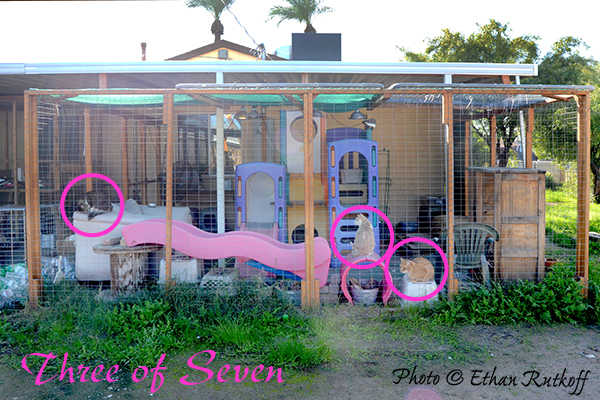 Tips and Tops came from a parking lot. DItto for Cocoa, who had a sister, Mocha, who passed from FIV complications. But they were unrelated lots. We quarantined her inside for some 8-9 months before she relented. And Tortie came from a lot.